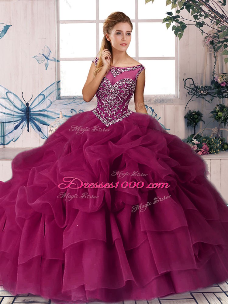 Admirable Fuchsia Zipper Quinceanera Dresses Beading and Pick Ups Sleeveless Brush Train