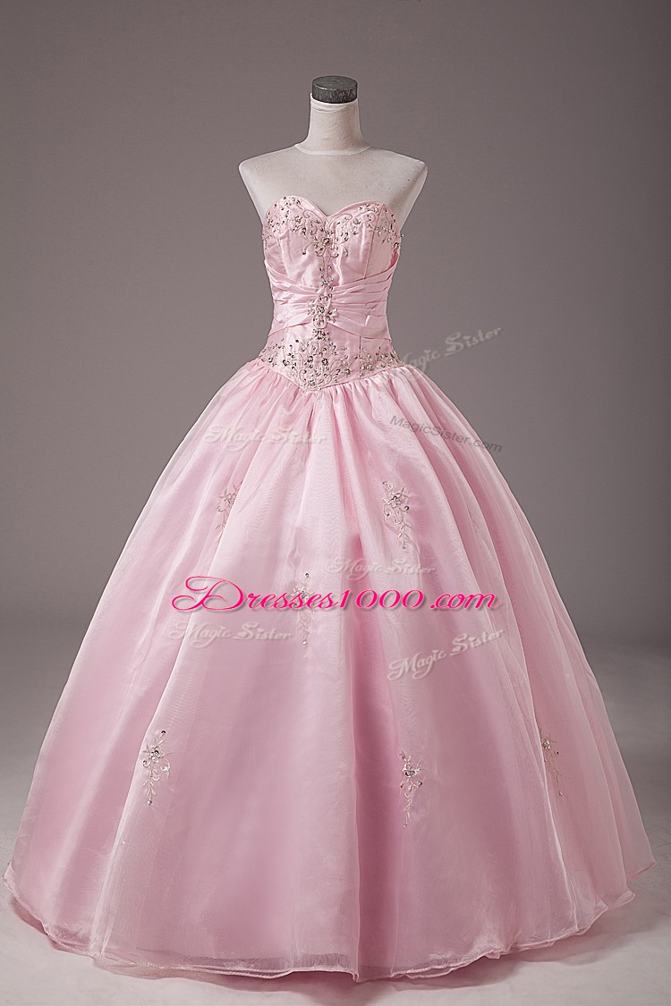 Elegant Baby Pink Lace Up Strapless Beading and Embroidery Sweet 16 Dress Organza Sleeveless