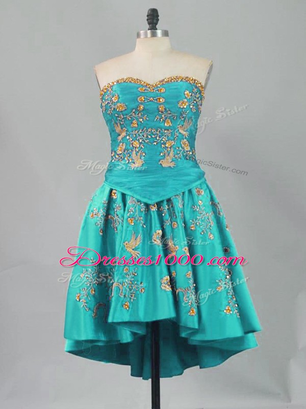 Dazzling Turquoise Lace Up Sweetheart Embroidery Prom Homecoming Dress Sleeveless