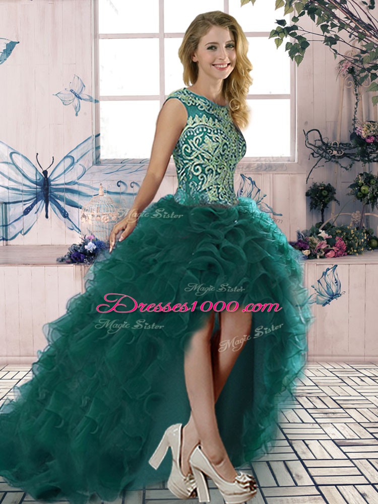 Pretty High Low Dark Green Pageant Dress for Womens Scoop Sleeveless Lace Up