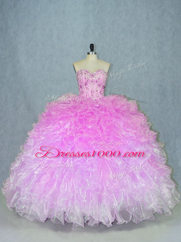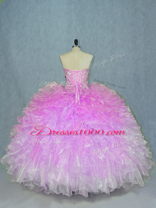 Multi-color Ball Gowns Organza Sweetheart Sleeveless Beading and Ruffles Floor Length Lace Up Ball Gown Prom Dress