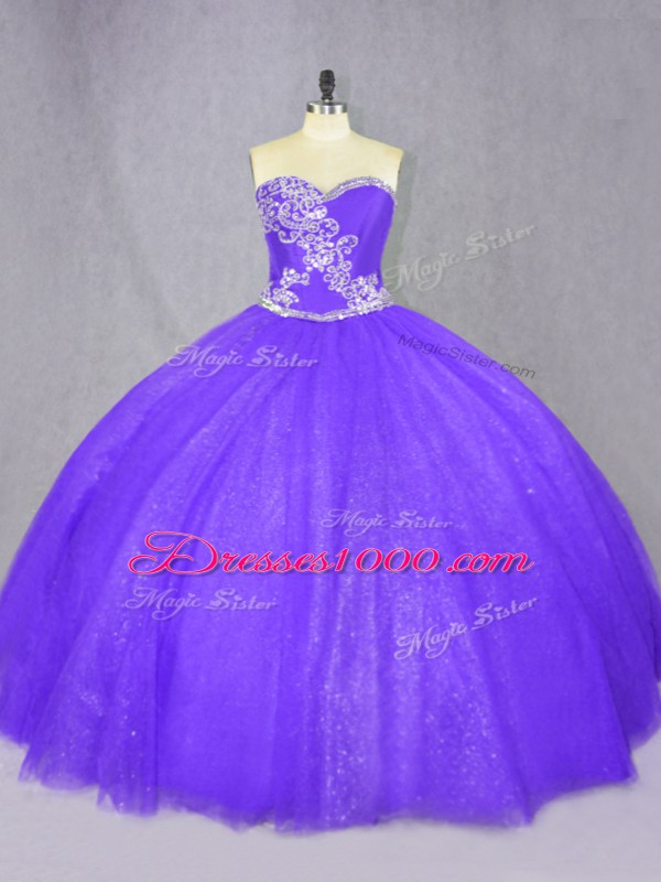 Edgy Purple Sleeveless Beading Floor Length Sweet 16 Dress