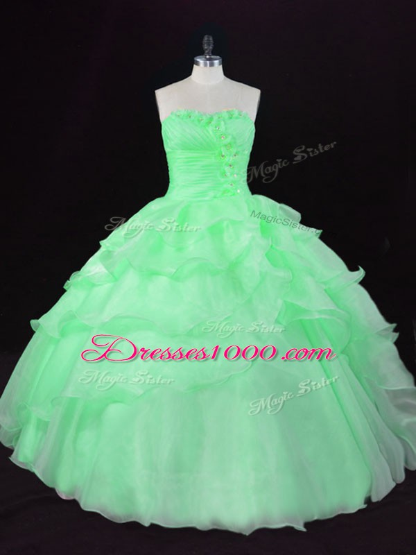 Flare Organza Sleeveless Floor Length Sweet 16 Dress and Hand Made Flower