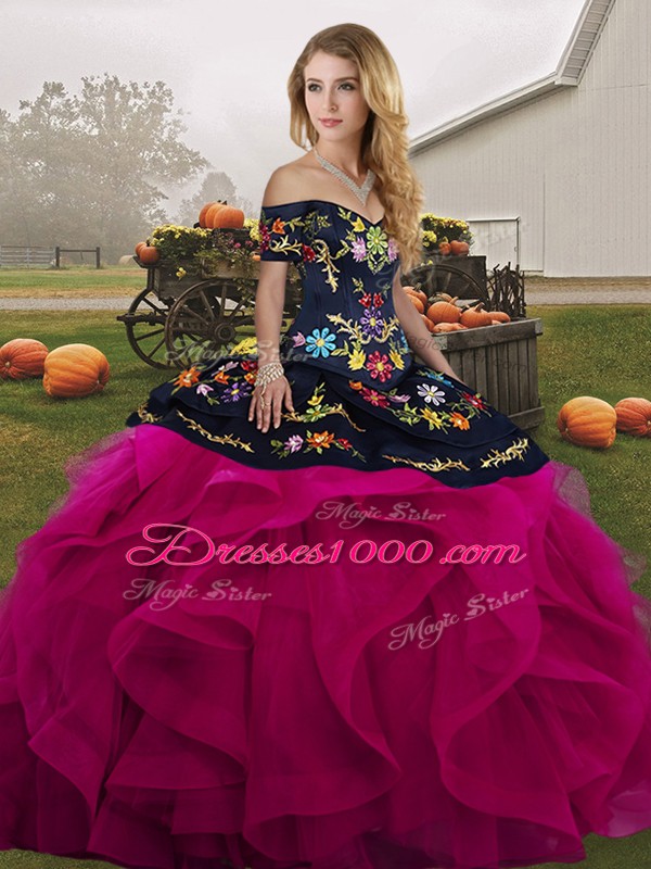 Chic Fuchsia Sleeveless Tulle Lace Up Sweet 16 Quinceanera Dress for Military Ball and Sweet 16 and Quinceanera