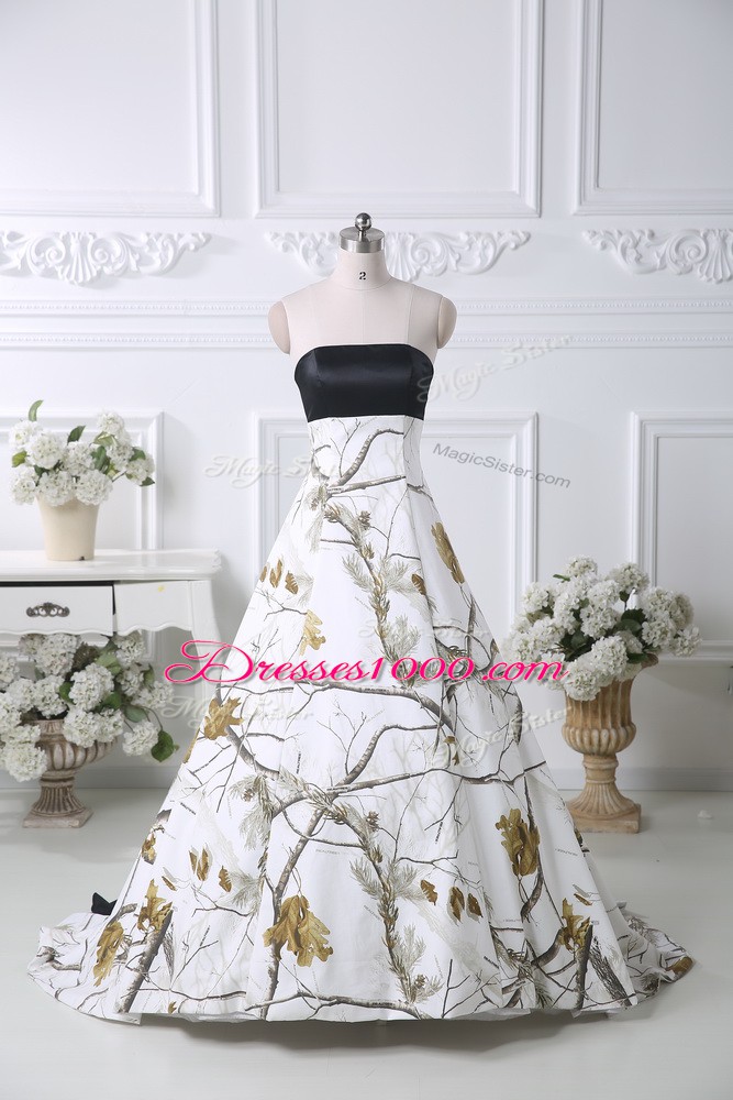 Delicate White Off The Shoulder Pattern Evening Dress Printed Sleeveless Brush Train