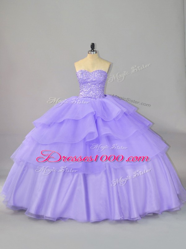 Lavender Sleeveless Beading and Ruffled Layers Quinceanera Dress