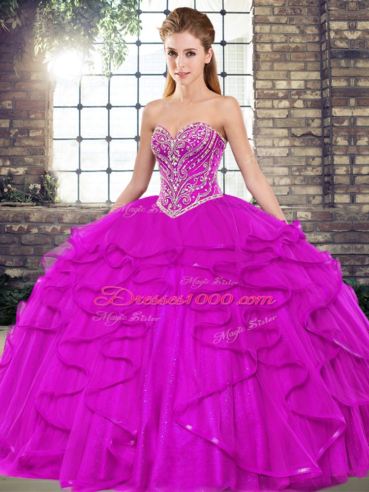 Sleeveless Beading and Ruffles Lace Up Quinceanera Gowns