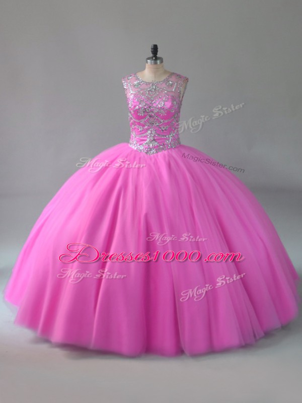 Floor Length Ball Gowns Sleeveless Rose Pink Quinceanera Gown Lace Up