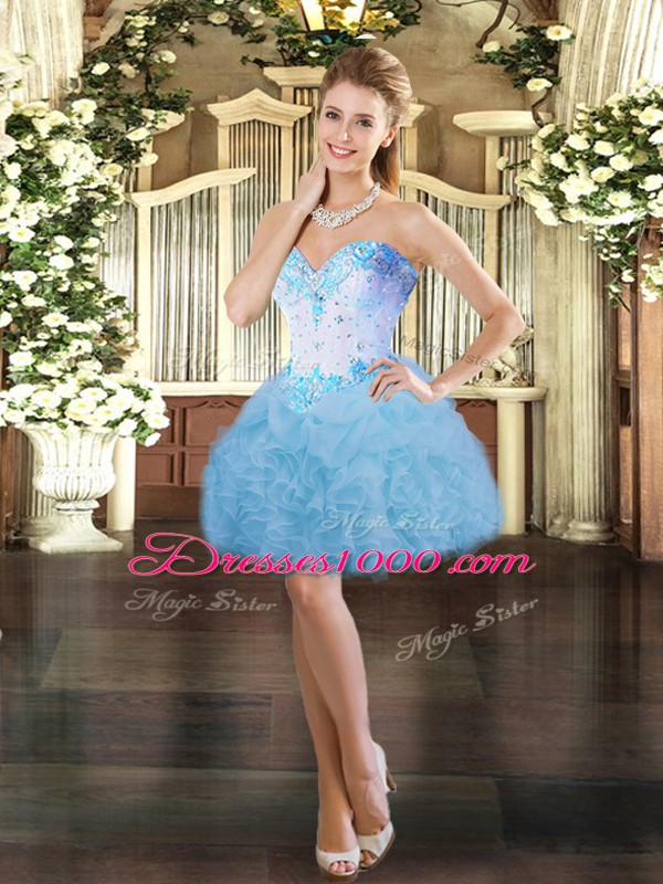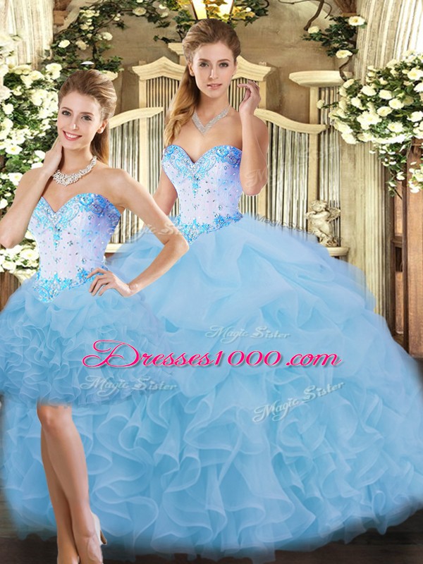 Graceful Blue Sleeveless Organza Lace Up 15 Quinceanera Dress for Sweet 16 and Quinceanera