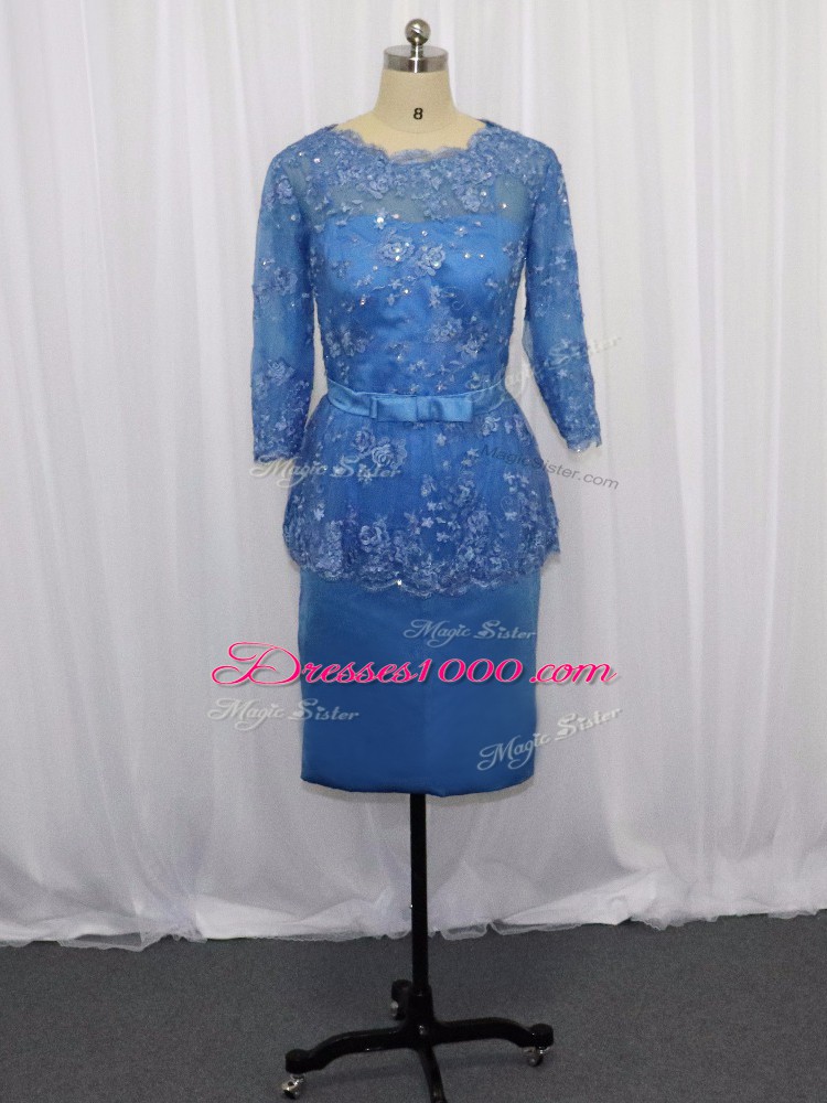 Trendy Blue Long Sleeves Satin Zipper Prom Party Dress for Prom and Party and Military Ball and Beach