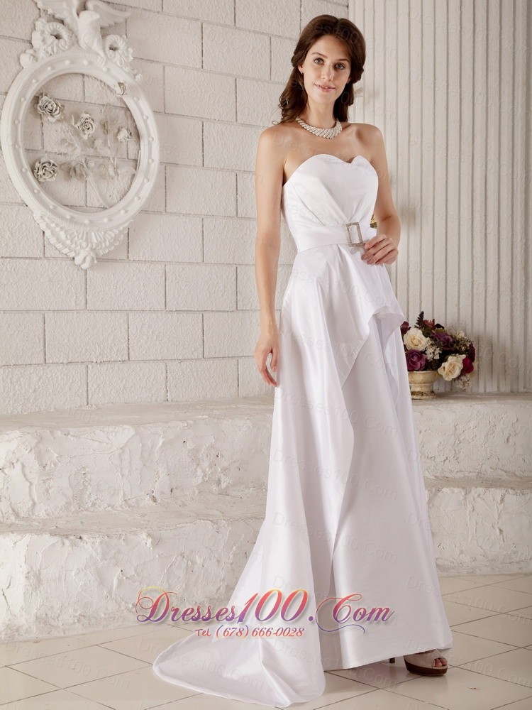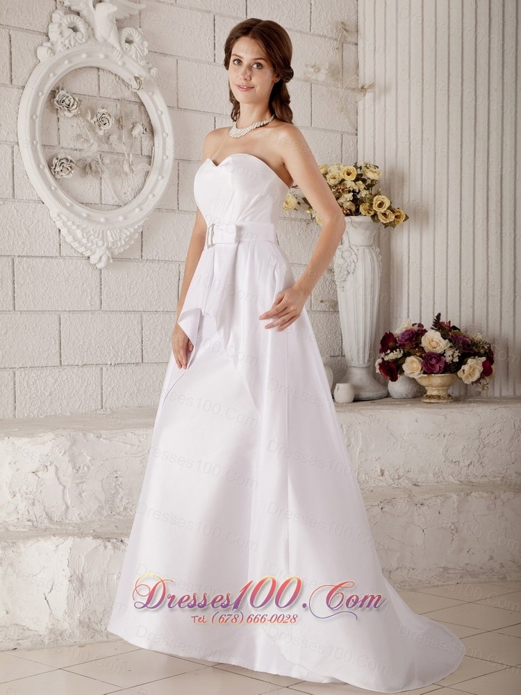 Dressy Satin Sweetheart Floor-length Bridal Wedding Gown Belt