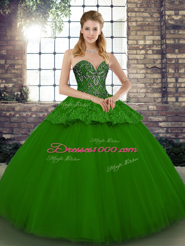 Ball Gowns Quinceanera Gowns Green Sweetheart Tulle Sleeveless Floor Length Lace Up