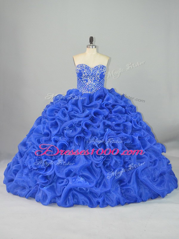 Sleeveless Brush Train Beading and Pick Ups Lace Up Sweet 16 Quinceanera Dress