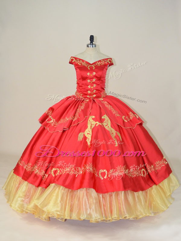 Embroidery Quinceanera Dress Red Lace Up Sleeveless Floor Length