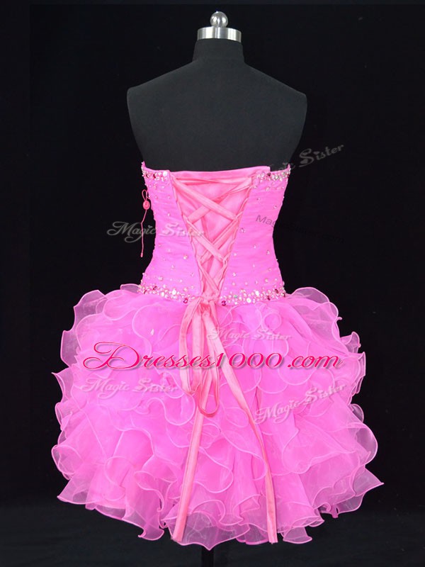 Best Selling Pink Ball Gowns Organza Strapless Sleeveless Beading Lace Up Homecoming Party Dress