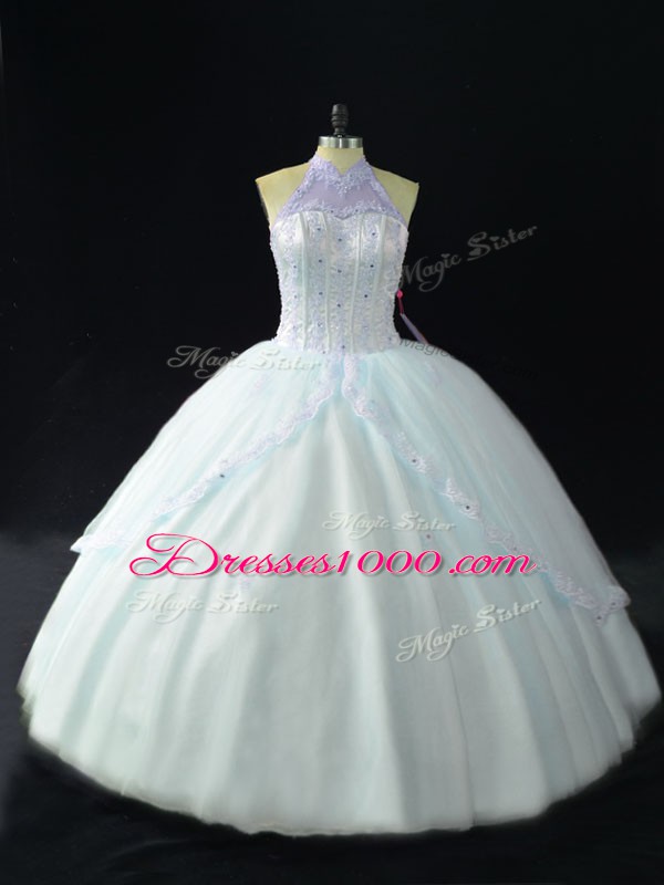 Smart Beading 15 Quinceanera Dress Blue Lace Up Sleeveless Floor Length