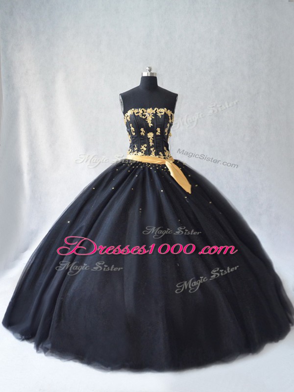 High Class Strapless Sleeveless Lace Up Sweet 16 Dress Black Tulle