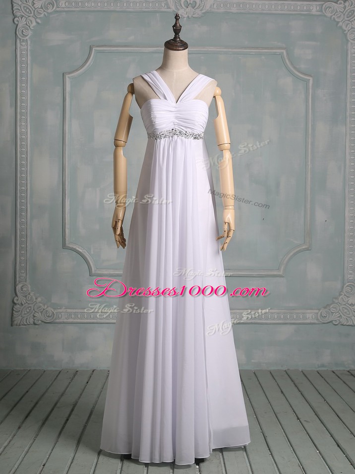Hot Selling White Straps Neckline Beading and Ruching Evening Wear Sleeveless Zipper