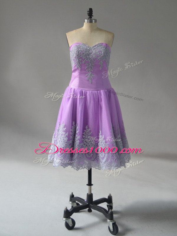 Fitting Lavender Lace Up Sweetheart Appliques and Embroidery Prom Party Dress Tulle Sleeveless