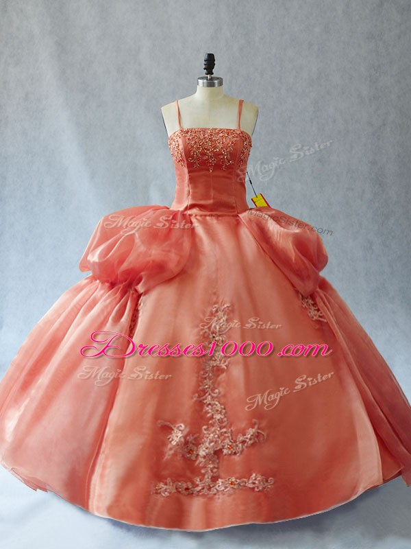 Decent Rust Red Lace Up 15 Quinceanera Dress Appliques Sleeveless Floor Length