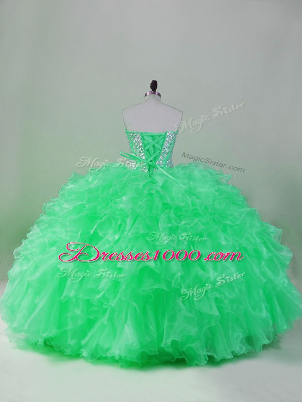 Best Green Lace Up Vestidos de Quinceanera Beading and Ruffles Sleeveless Floor Length