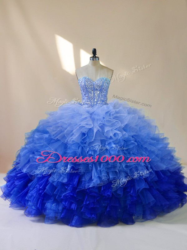 Multi-color Lace Up Sweetheart Beading and Ruffles Quinceanera Gowns Organza Sleeveless