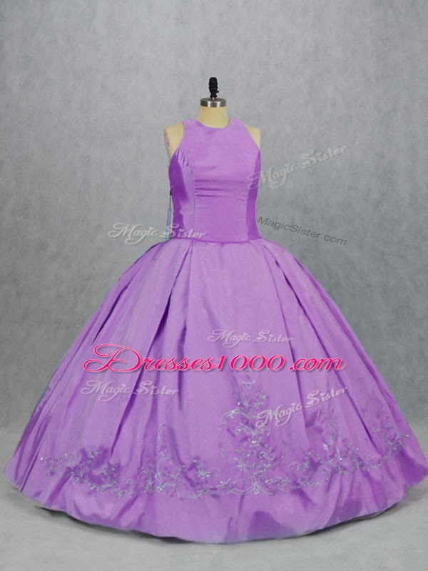 Admirable Lilac Sleeveless Floor Length Embroidery Zipper 15 Quinceanera Dress