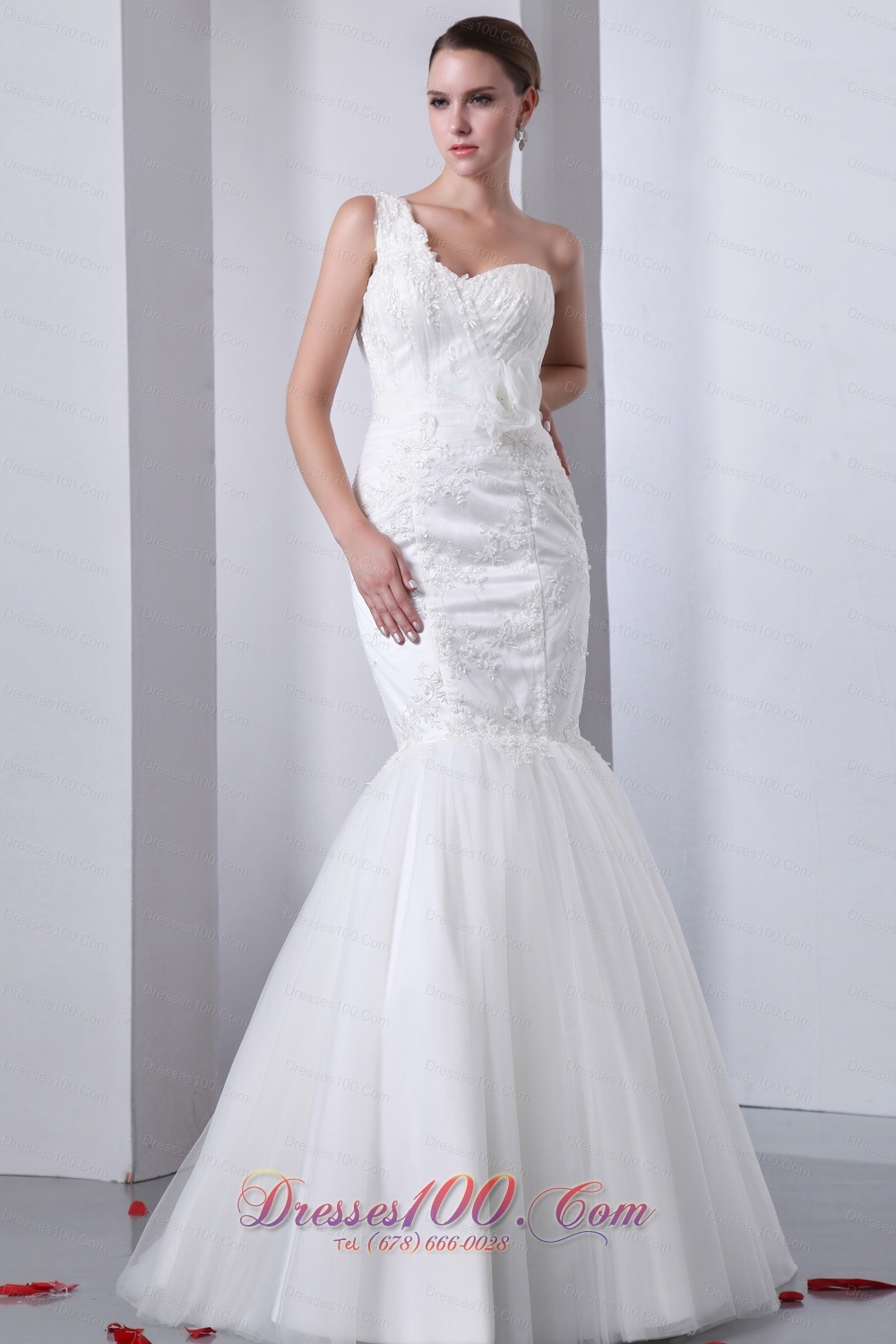 One Shoulder Mermaid Tulle Indoor Wedding Dress