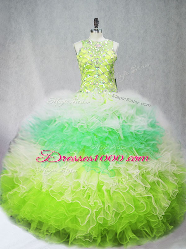 Sleeveless Floor Length Beading and Ruffles Zipper Sweet 16 Dress with Multi-color