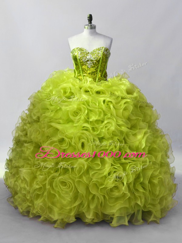 Sweetheart Sleeveless Lace Up Sweet 16 Dress Yellow Green Organza