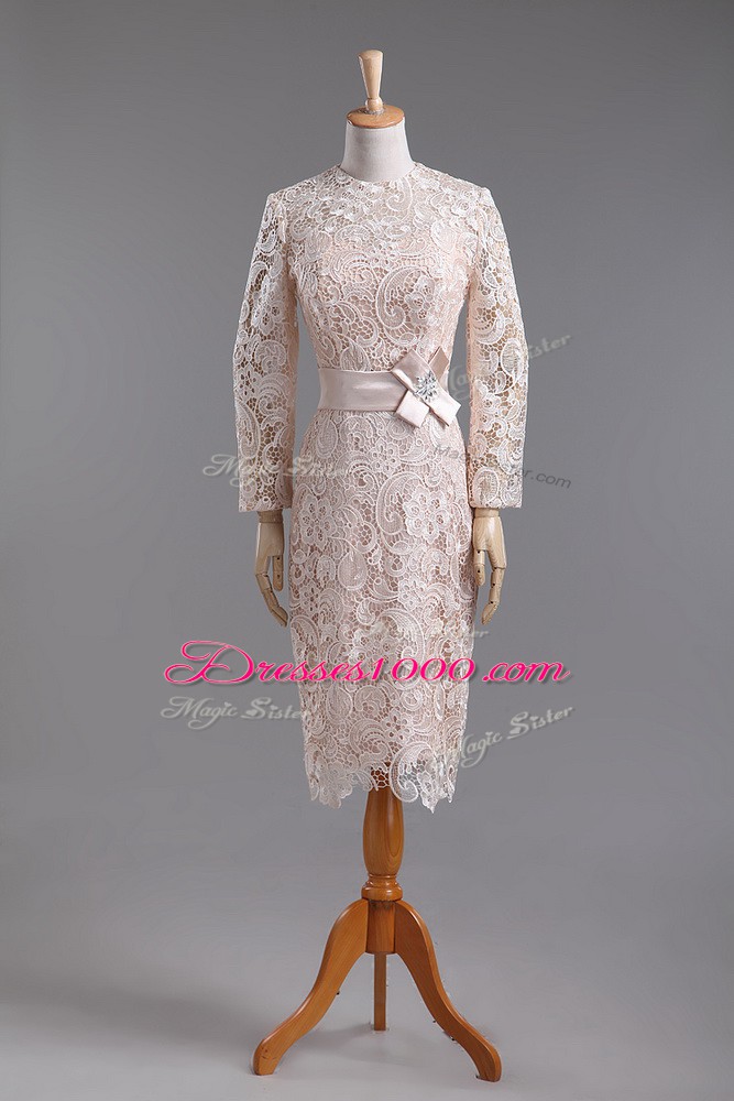 Elegant Column/Sheath Prom Party Dress Champagne High-neck Lace Long Sleeves Tea Length Zipper