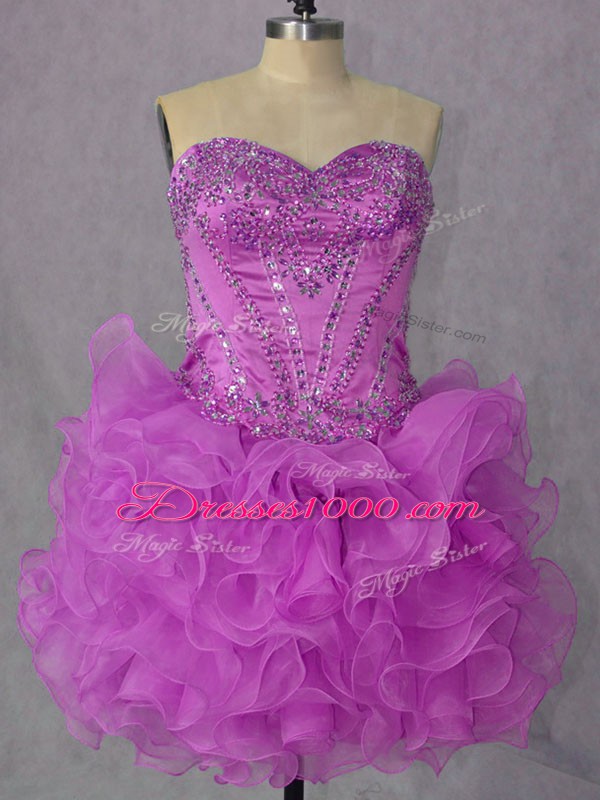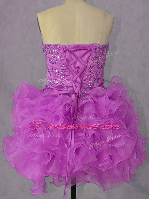 Inexpensive Beading and Ruffles Party Dress for Girls Lilac Lace Up Sleeveless Mini Length