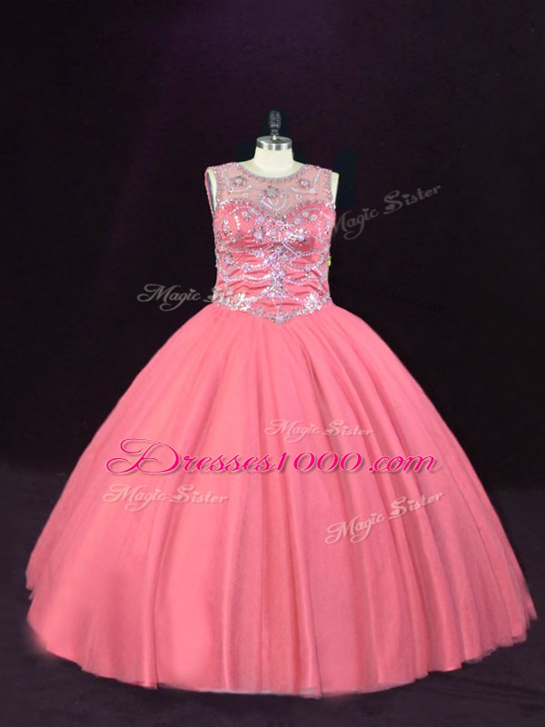 Beauteous Pink Sweet 16 Dresses Sweet 16 and Quinceanera with Beading Scoop Sleeveless Lace Up