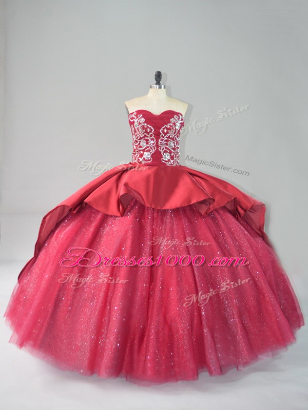 Dramatic Ball Gowns Sleeveless Wine Red 15th Birthday Dress Court Train Lace Up