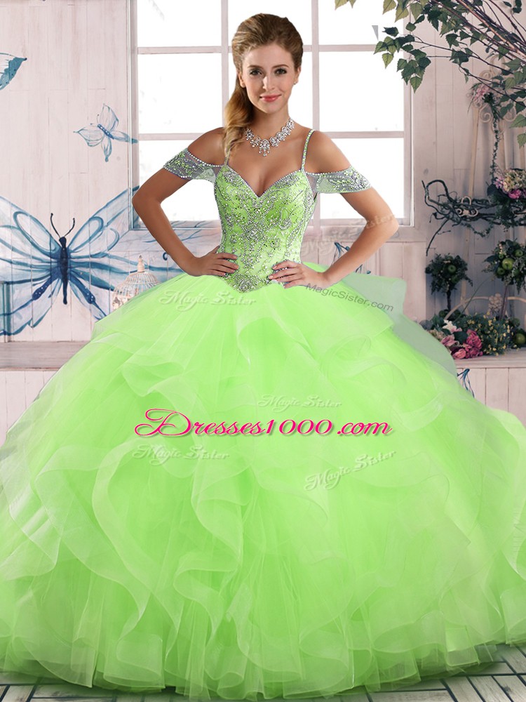 Tulle Sleeveless Floor Length Sweet 16 Quinceanera Dress and Beading and Ruffles