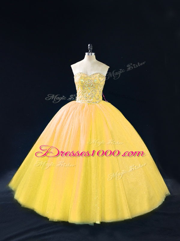 Sleeveless Lace Up Floor Length Beading Quinceanera Gowns
