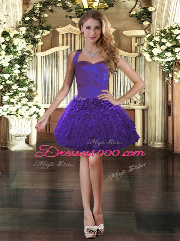 Organza Halter Top Sleeveless Lace Up Ruffles Junior Homecoming Dress in Purple