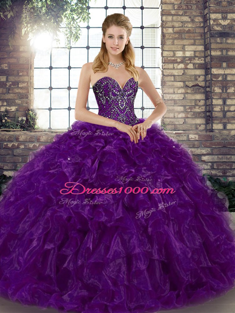 Sweetheart Sleeveless Organza Quinceanera Dresses Beading and Ruffles Lace Up