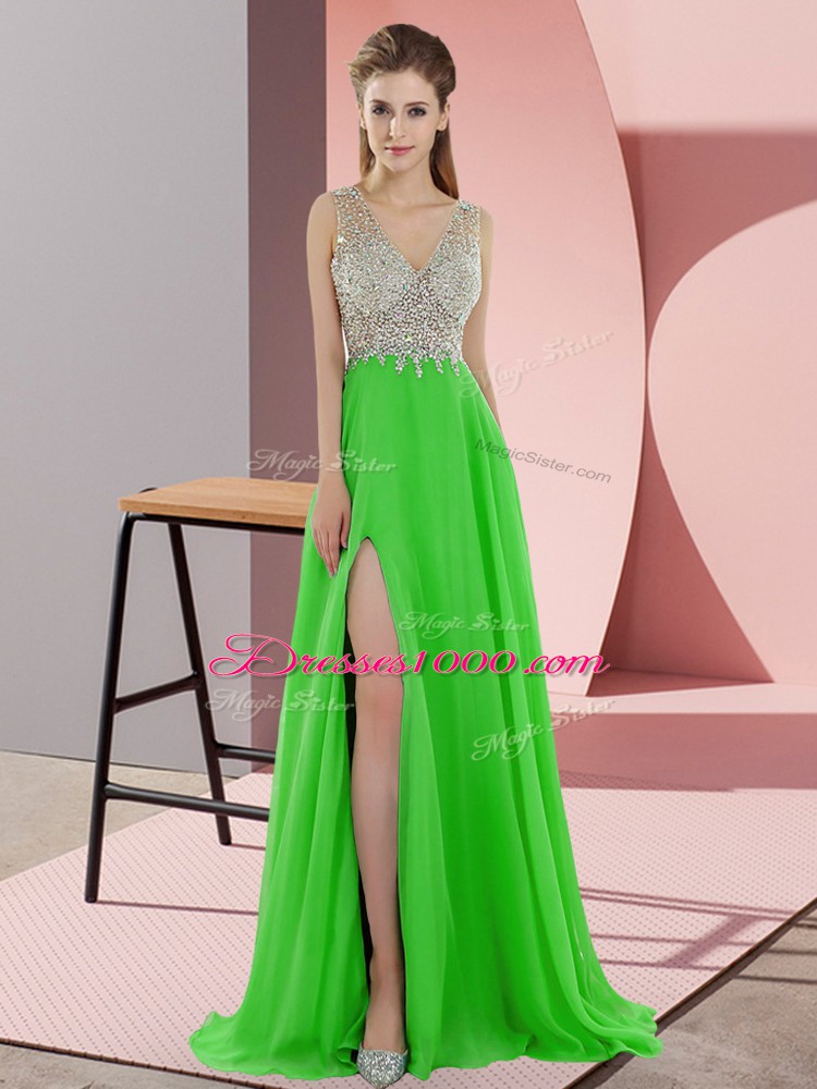 Fashion Sleeveless Sweep Train Zipper Beading Prom Dress
