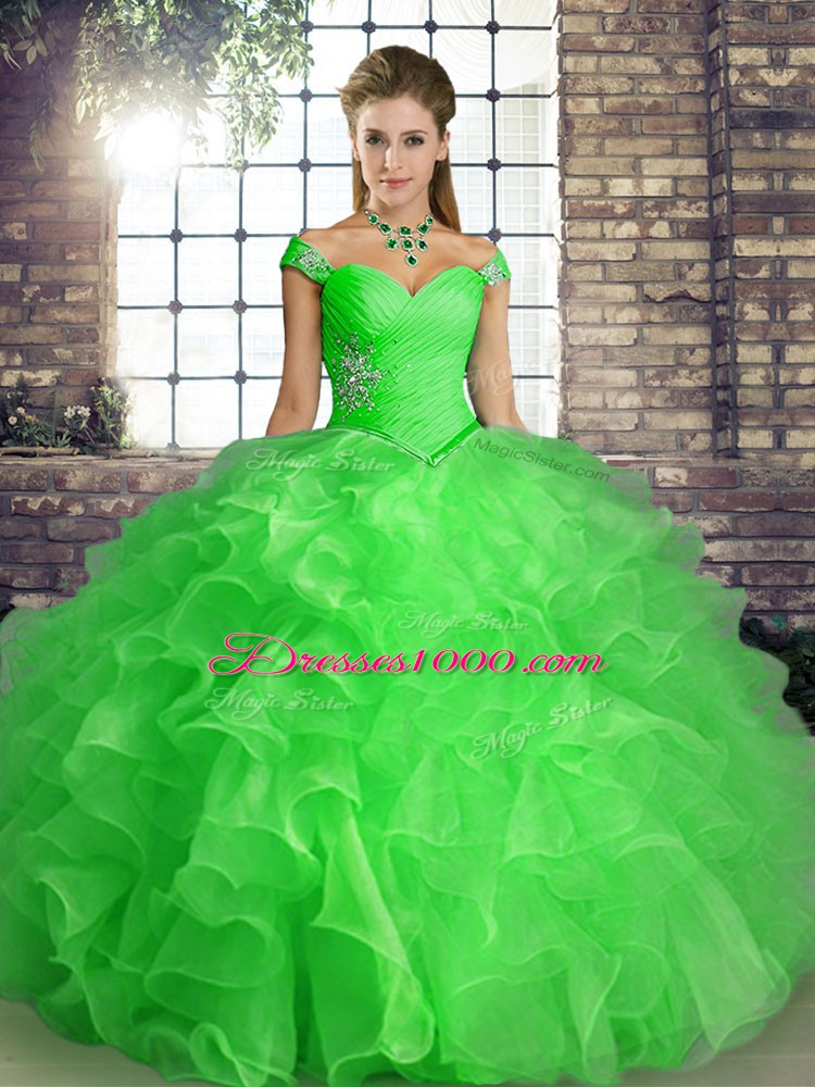 Green Lace Up Off The Shoulder Beading and Ruffles 15th Birthday Dress Organza Sleeveless