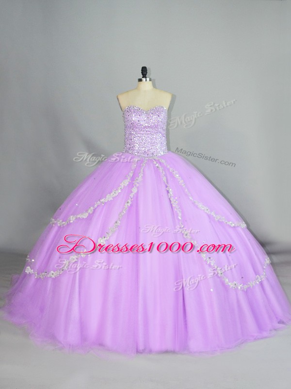 Trendy Lavender Ball Gowns Tulle Sweetheart Sleeveless Appliques Lace Up Vestidos de Quinceanera