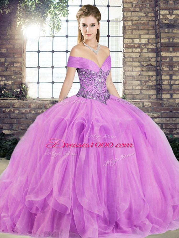Floor Length Ball Gowns Sleeveless Lilac Sweet 16 Quinceanera Dress Lace Up