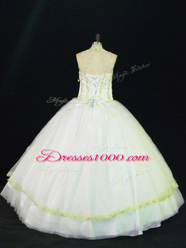 Yellow And White Lace Up Quinceanera Gowns Appliques Sleeveless Floor Length