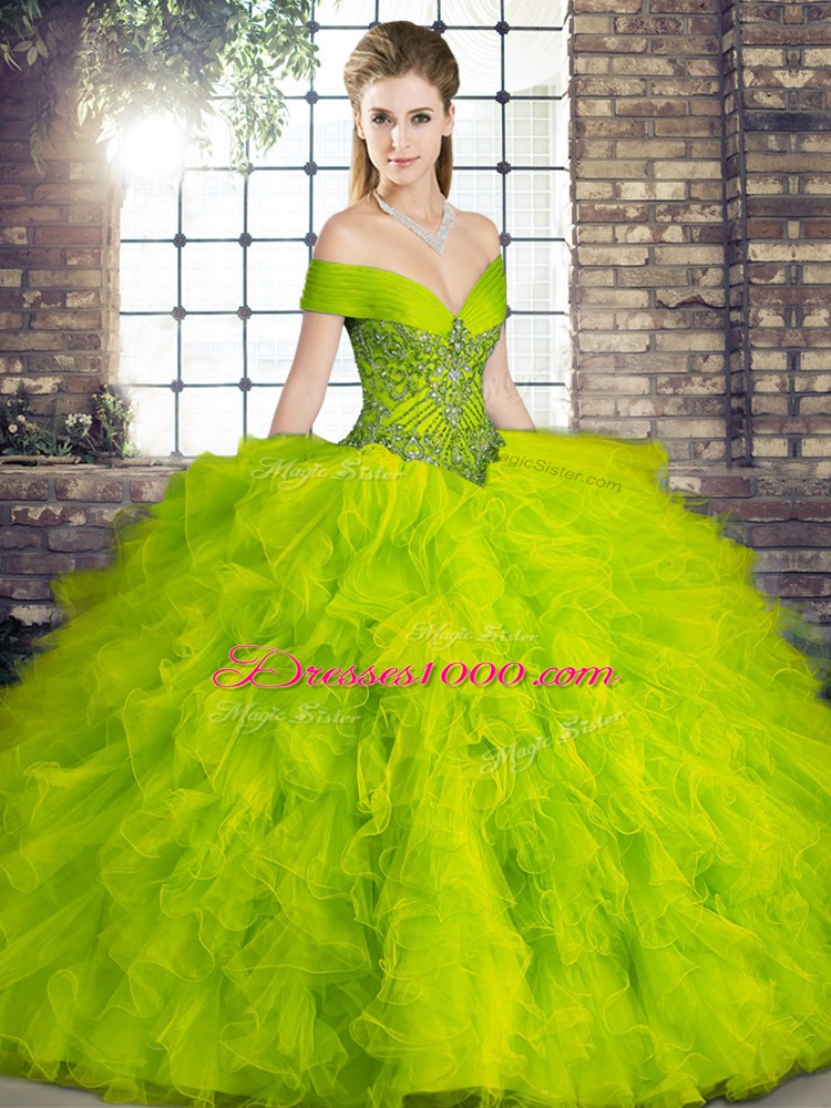Pretty Sleeveless Lace Up Floor Length Beading and Ruffles Quinceanera Dresses