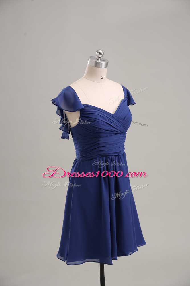 Sweet Blue Chiffon Lace Up Sweetheart Sleeveless Mini Length Homecoming Dress Online Ruching