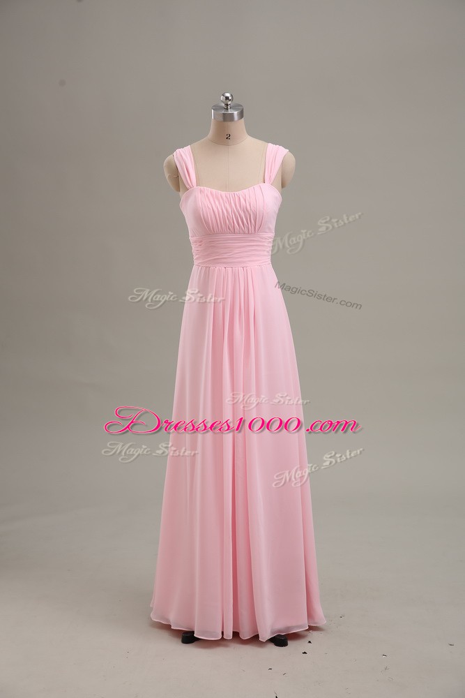 Sleeveless Chiffon Floor Length Zipper Evening Dress in Baby Pink with Ruching
