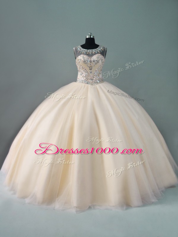 Champagne Zipper Quinceanera Dresses Beading Sleeveless Floor Length