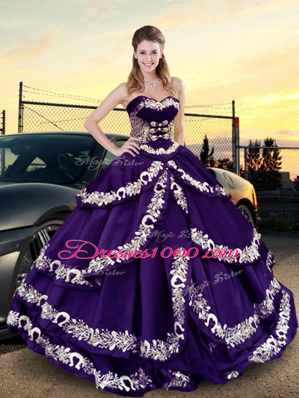 Lace Up Quinceanera Dresses Purple for Sweet 16 and Quinceanera with Embroidery and Ruffled Layers