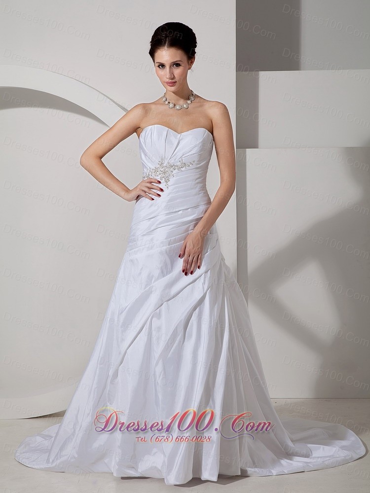 Sweetheart Wedding Gown Princess Ruch Court Train Taffeta