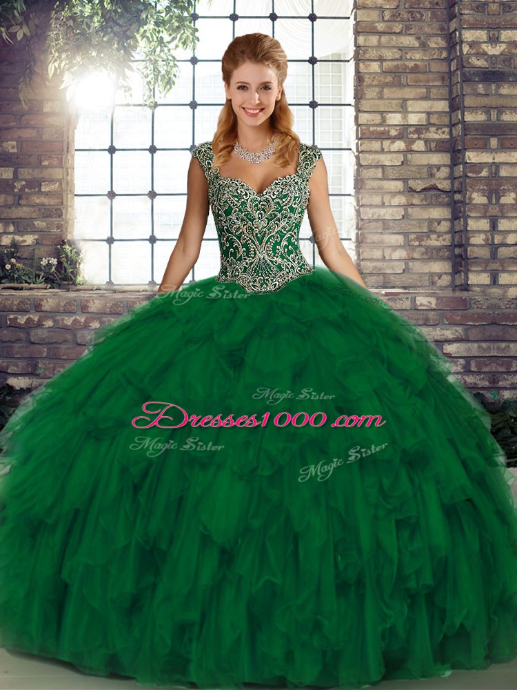 Green Sleeveless Organza Lace Up Quince Ball Gowns for Military Ball and Sweet 16 and Quinceanera
